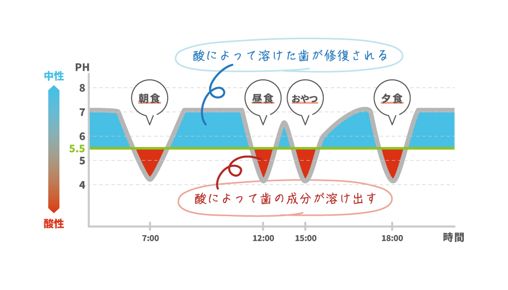 また、間食を減らすことで、脱灰する回数を少なくできます。